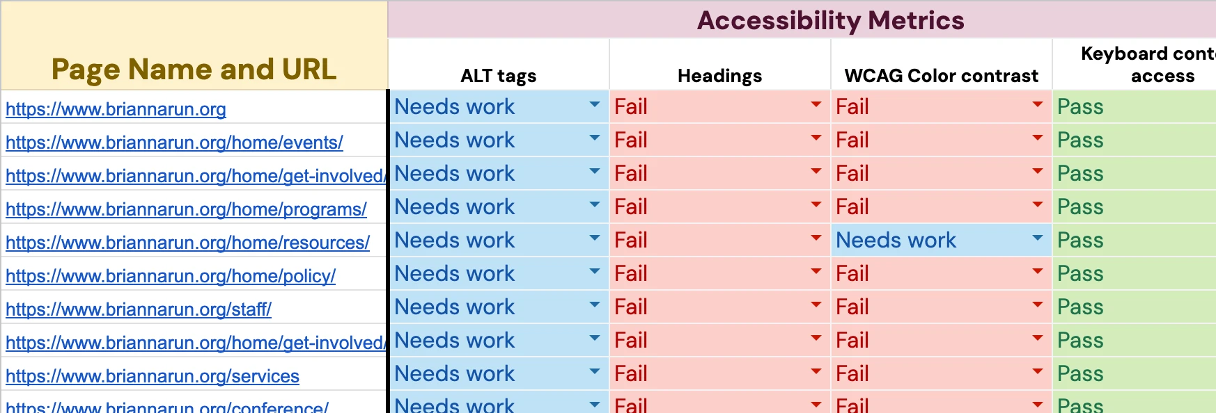 See each compliance metric spelled out and scored, page by page. Learn whether the metric passes, fails, or needs work.